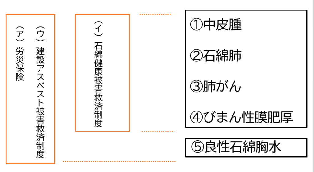 (1)アスベスト給付金制度の対象となるのは以下の4つです。