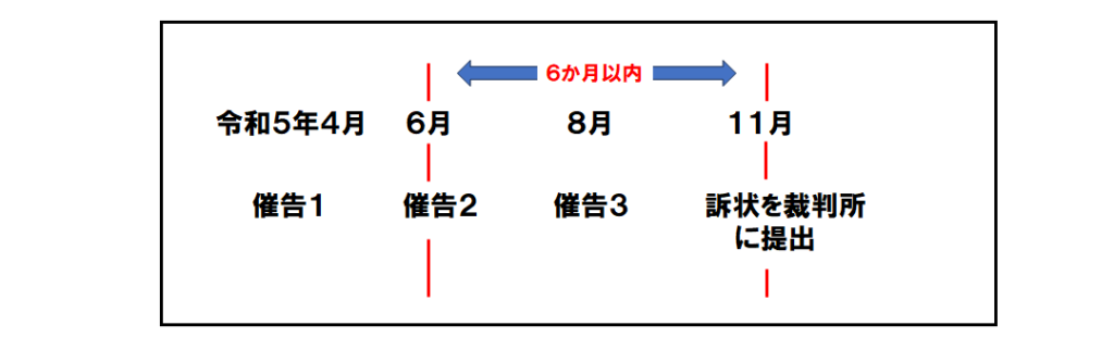 (1)令和5年4月に催告し(催告1)、11月に訴状を提出した。