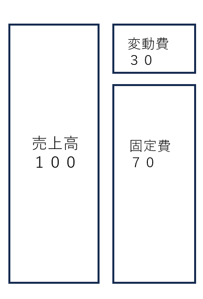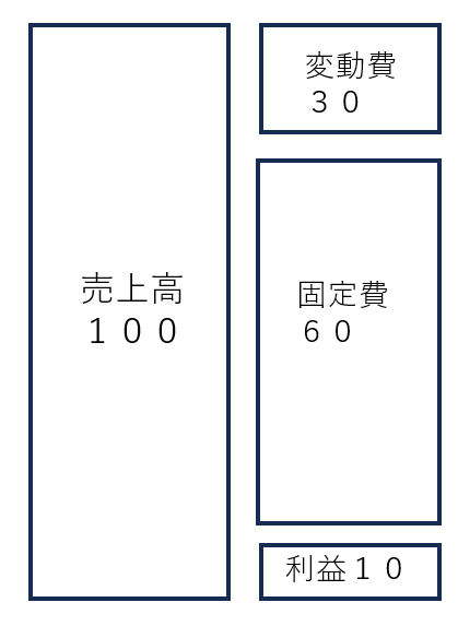 売上は100万円、変動費は30%、固定費が60%、利益が10%だったとする。