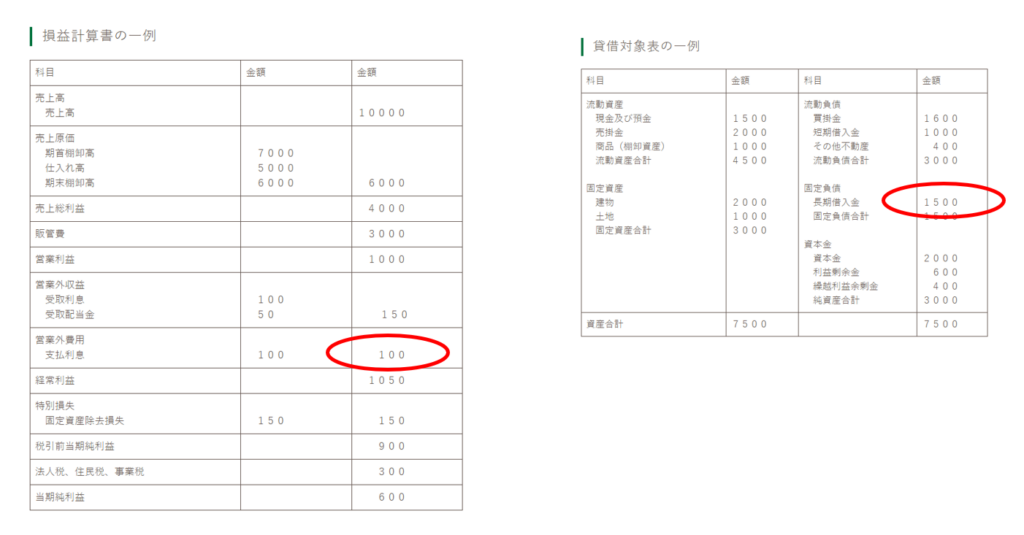 (3)利息 ÷ 長期借入金 で計算すれば、利息が計算します。