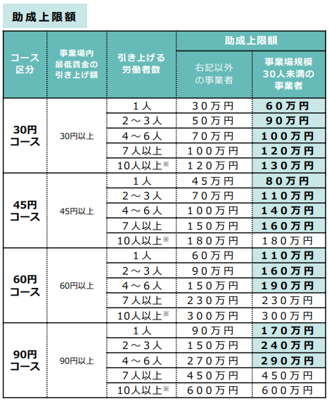 (2)対象労働者の賃金をアップさせること(30円、45円、60円、90円などのコースがある。)